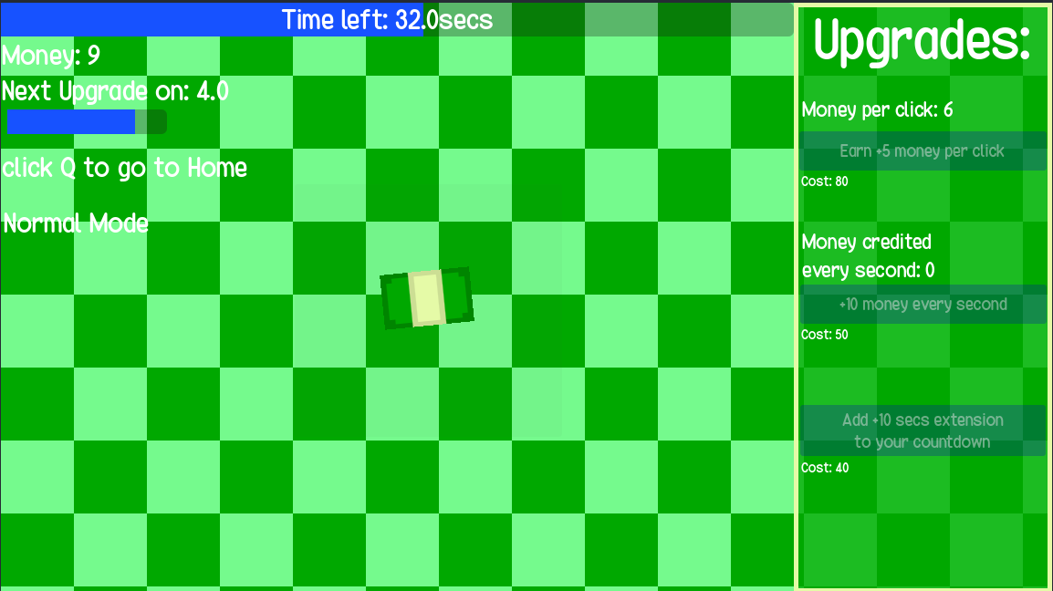 - Easy Mode: Similar to Normal Mode, but in this mode you can just hold the mouse button to earn money, instead of clicking it every time.